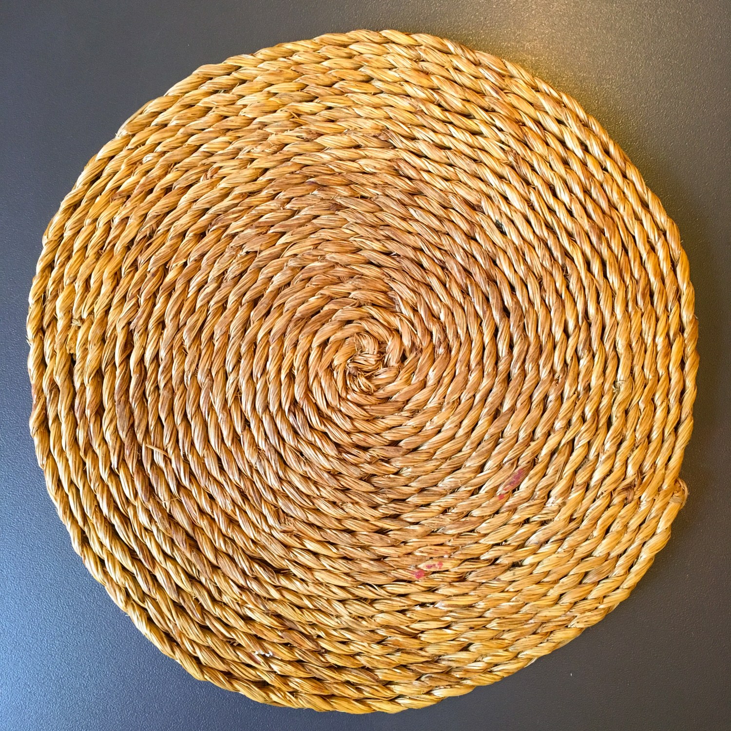 Dieser geflochtene Untersetzer ist einer von zweien, die ich irgendwann in den 1980er Jahren von einer gemeinsamen Reise mit meiner Mutter aus Afrika mitgebracht habe.