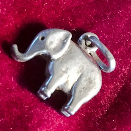 Dieser silberne Kettenanhänger in Elefantenform stammt aus den Jahren in der Mittel- und Oberstufe, in denen ich Elefanten sammelte. "Alles, was mehr als drei ist, ist eine Sammlung", sagte mein Vater...